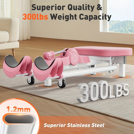 330 LBS Capacity Space-Saving Multifunctional Squat Rowing Machine for Home Yoga, 4 Adjustable Resistance Levels, Foldable & Easy Set Up, Full Body Workout Home Gym, Grey\u002FPink