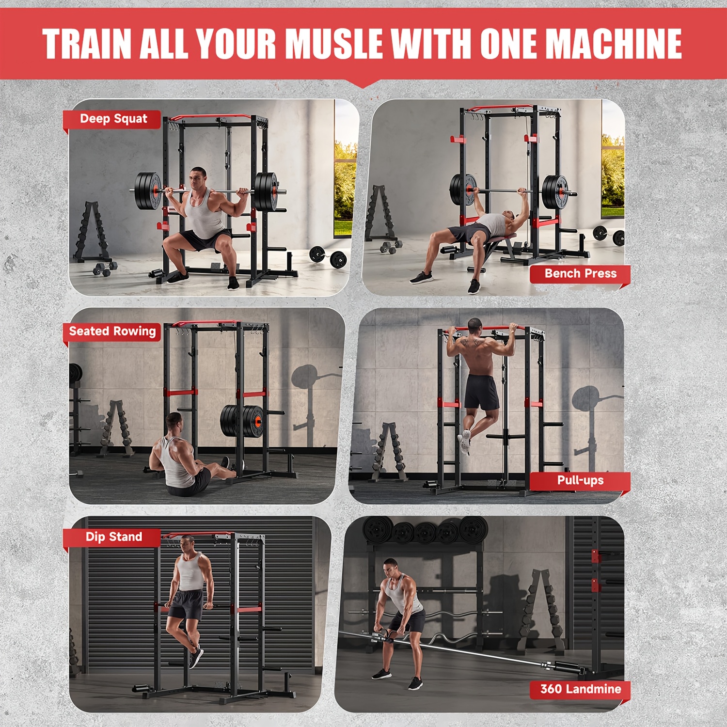 1pc Red Power Cage 1200lbs Multi-Functional Weight Rack with Adjustable Cable System, Home Gym Equipment, Grip Strength Training Bench with Leg Extension & Curl Machine, No Electricity Needed, Gym Accessories