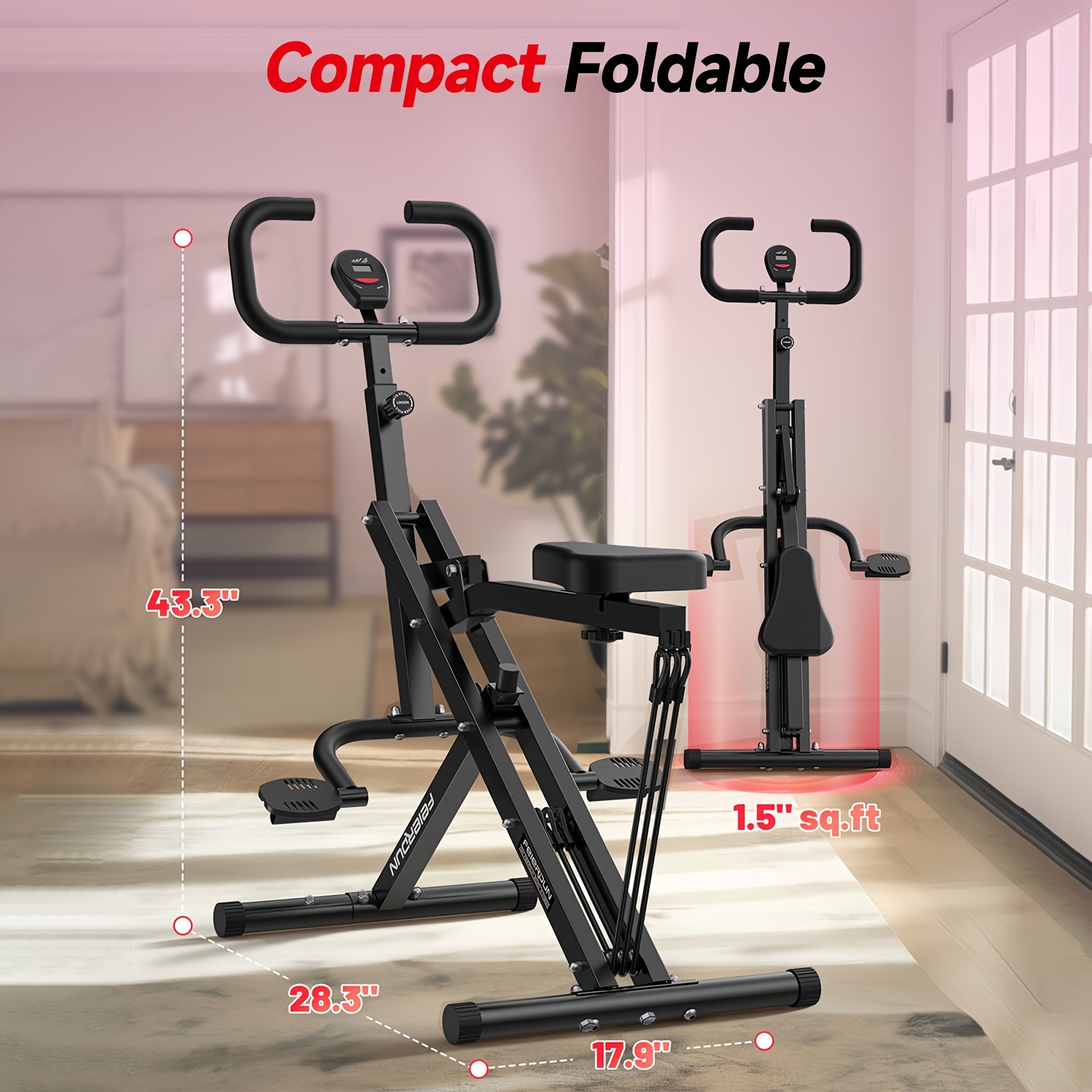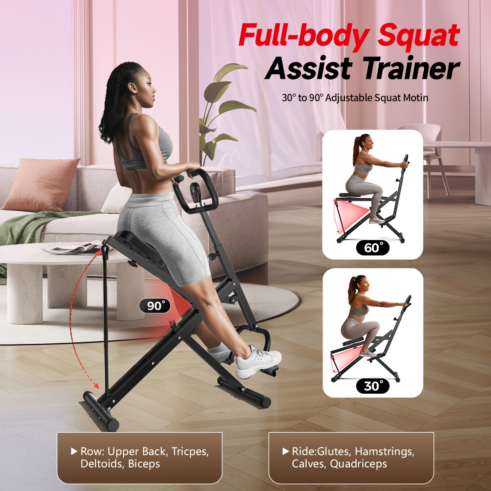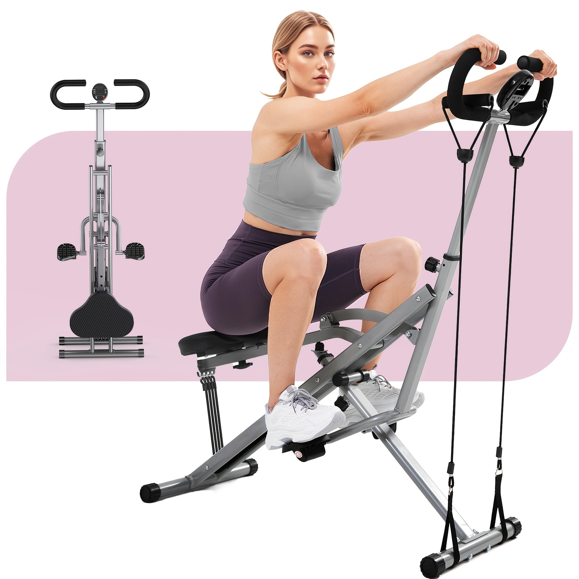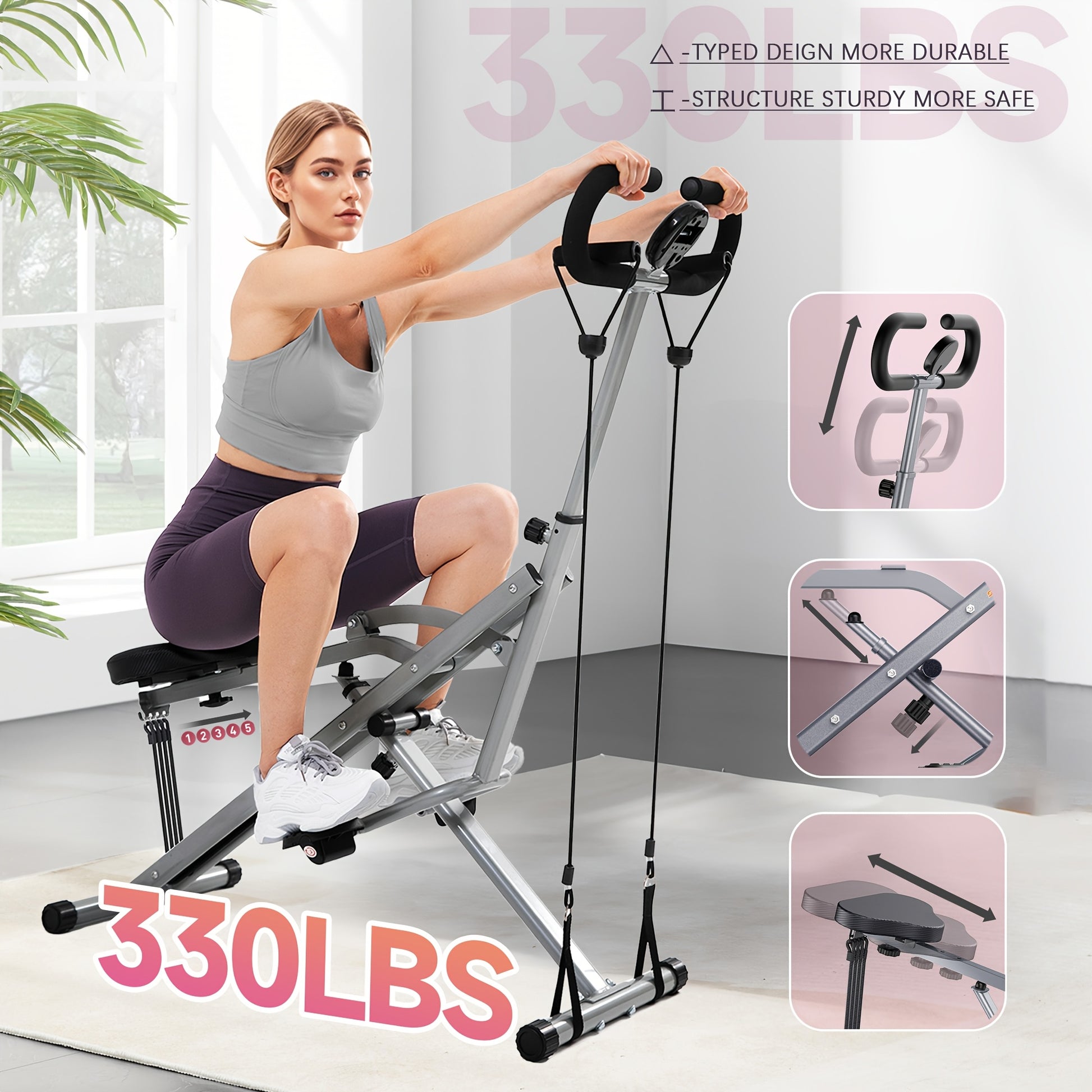 330 LBS Capacity Space-Saving Multifunctional Squat Rowing Machine for Home Yoga, 4 Adjustable Resistance Levels, Foldable & Easy Set Up, Full Body Workout Home Gym, Grey\u002FPink