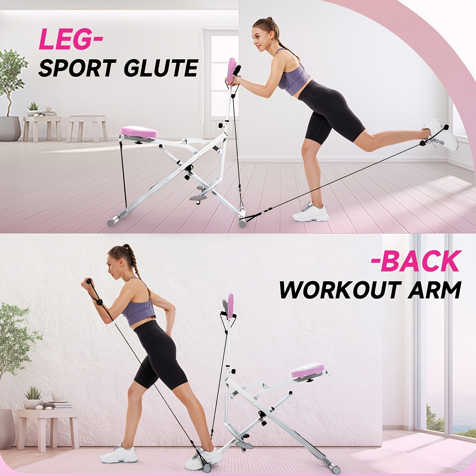 Multifuntional Squat Rowing Machine for Home Yoga, 4 Adjustable Resistance Levels, 330 LBS Capacity, Foldable & Easy Set Up, Effectively Exercise Arm And Leg Muscles, Improve The Body's Motor Coordination, Full Body Workout Home Gym, Grey\u002FPink